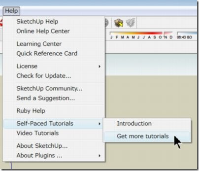 自習式チュートリアルは「Help/Self-Paced Tutorials/Get more Tutorials」よりダウンロードskpファイルをダウンロードし上から順番に開いてやってみるのがいい。