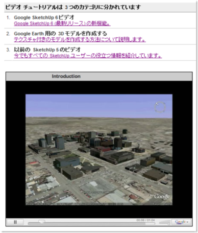 再生」をクリックするとSketchup.google.comにジャンプしてビデオが再生される。